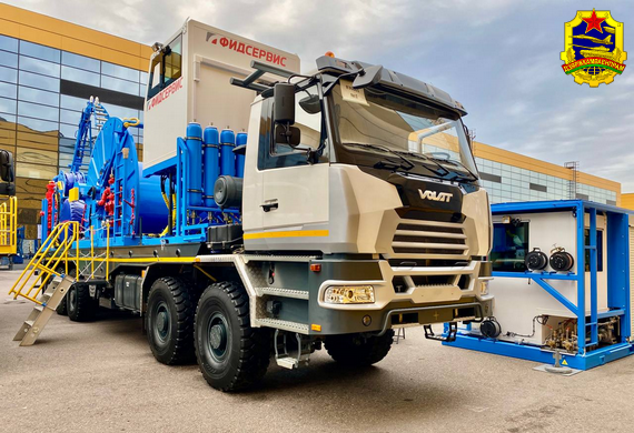 На открытой выставочной площади Петербургского международного газового форума представлена колтюбинговая установка на шасси МЗКТ-830001 с грузоподъемностью до 51 тонны.